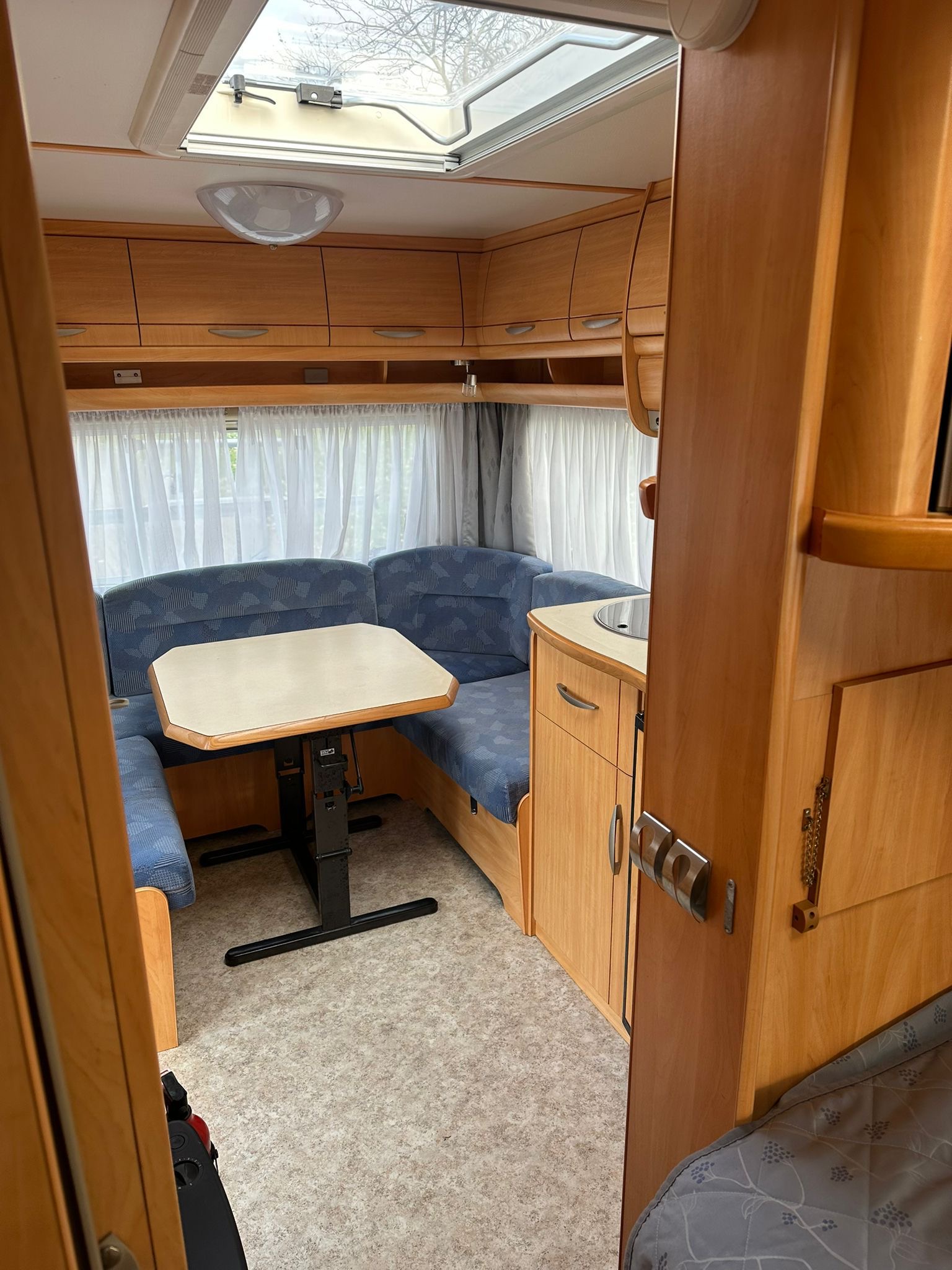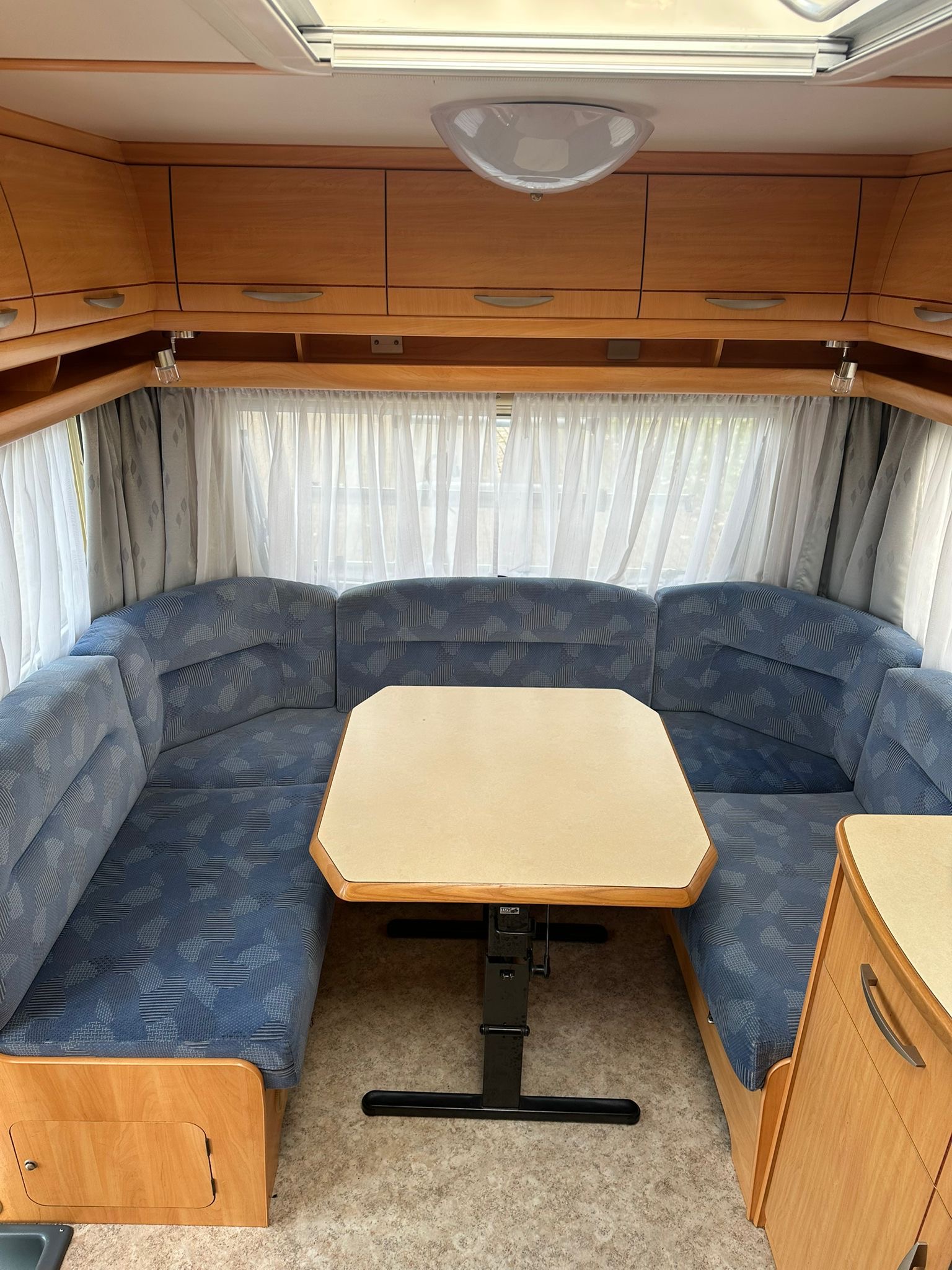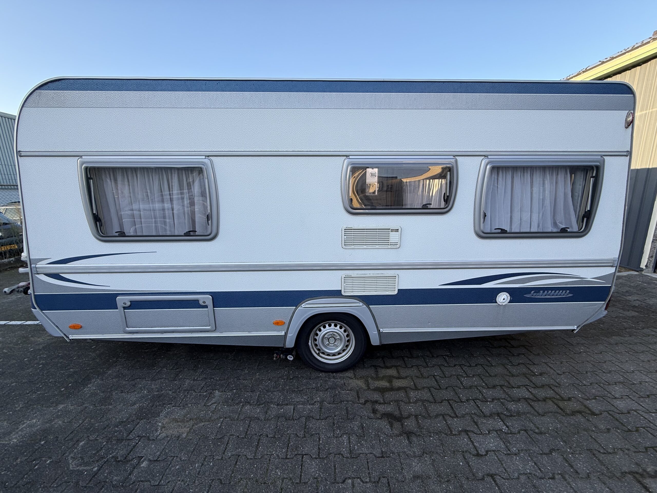 Fendt Saphir 470 TFB uitgevoerd met Frans bed, Mover, luifel, Dakluiken, Koelkast, Boiler 5L, Serviceluik, Schokbrekers, Stabilisator, Spotjes, Combi rollo’s, Voortentlamp, rondzit