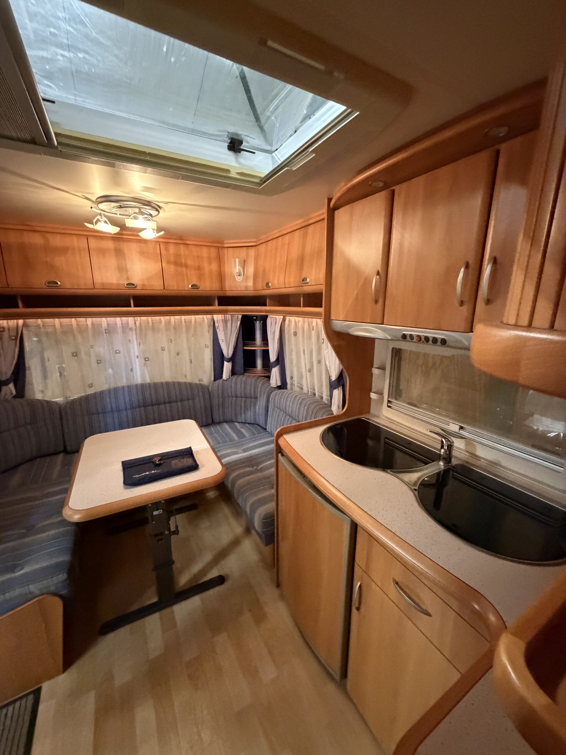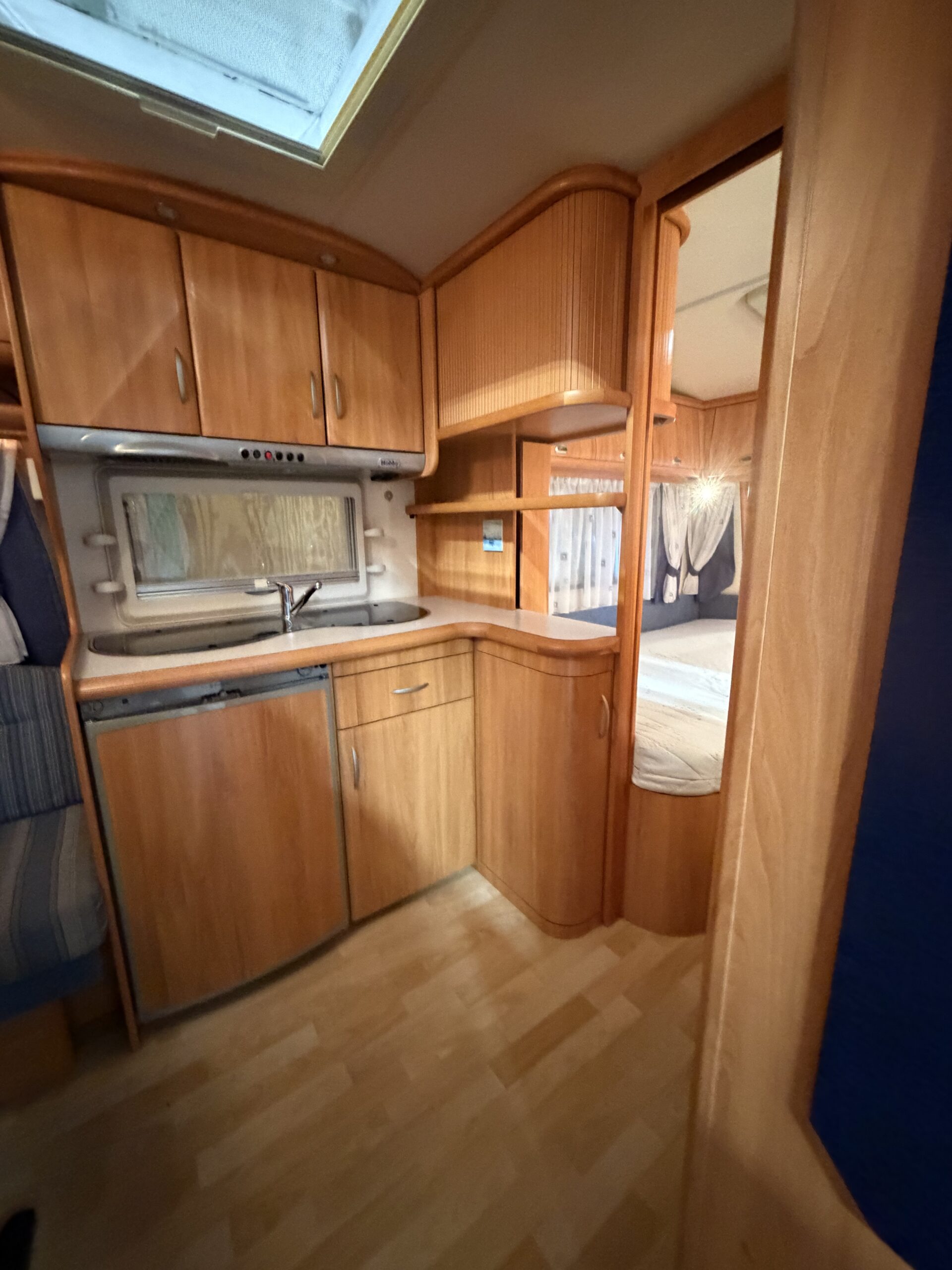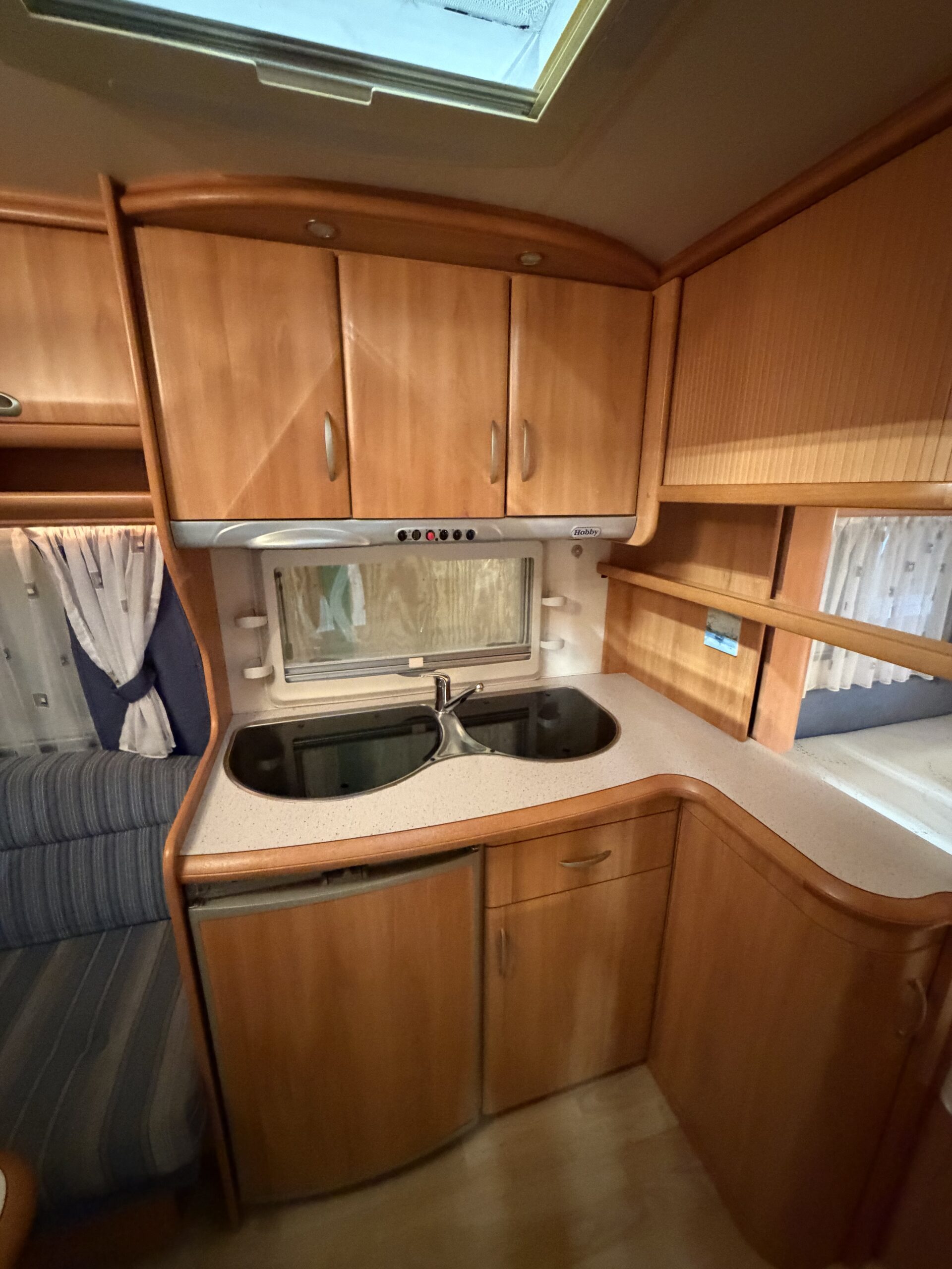 Hobby 460 UFE De Luxe Easy  uitgevoerd met Frans bed, Mover, Isabella voortent, Dakluiken, Koelkast, Boiler 5L, Serviceluik, Stabilisator, Spotjes, Combi rollo’s, Voortentlamp, Rondzit